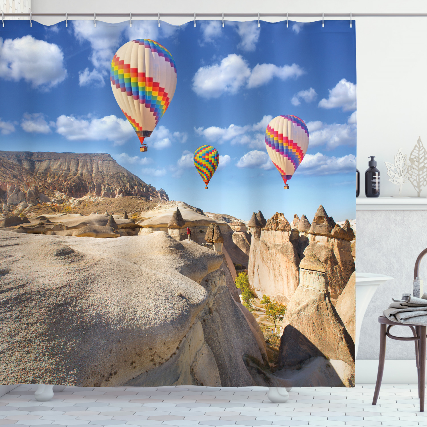 Colorful Shower Curtain Rocky Landscape View At Cappadocia Turkey And Flying Hot Air Balloons Image Fabric Bathroom Set With Hooks 69w X 70l Inches Multicolor By Ambesonne Walmart Com