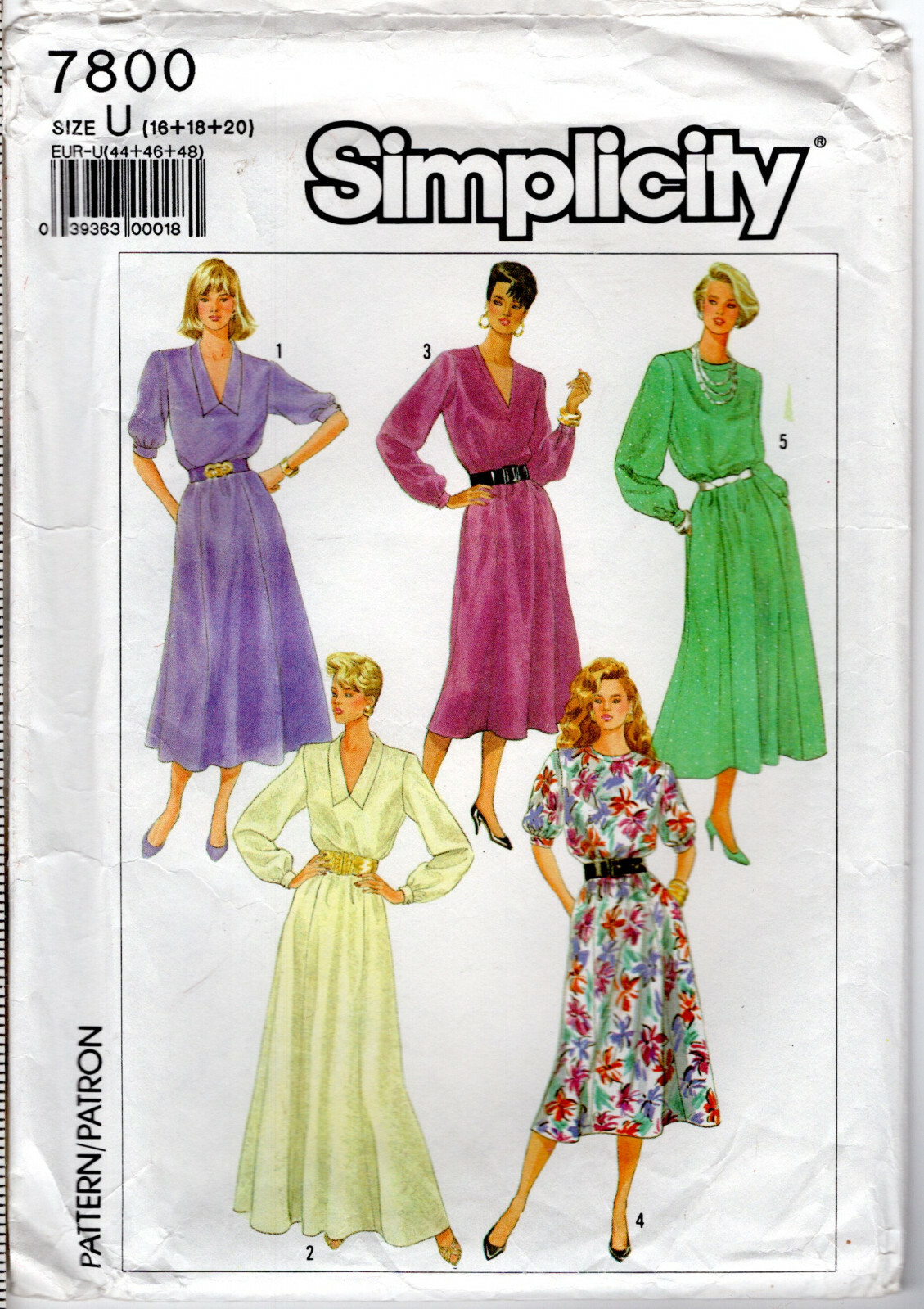 034 Misses 039 Easy To Sew Dresses In 3 Lengths 034 C 1986 Simplicity 7800 16 18 20 Ebay